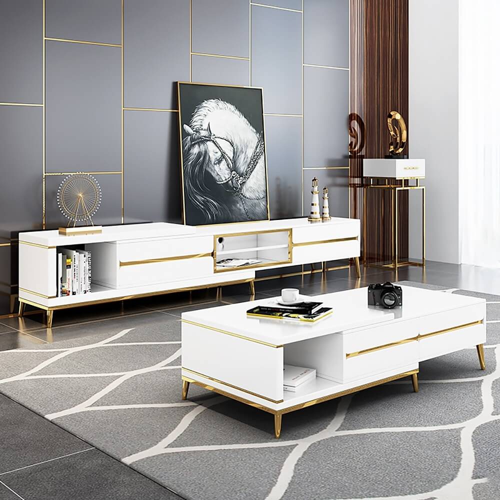 Bàn phòng khách sở hữu kiểu dáng thời trang mang đến vẻ đẹp tinh tế cho không gian phòng khách của bạn. Bàn có thể kế dạng nâng nên người dùng có thể nâng lên hay hạ xuống để tạo độ cao hoàn hảo. Đi kèm với đó là 6 ngăn kéo và không gian lưu trữ mở cung cấp không gian rộng rãi để các bạn lưu trữ đồ đạc.